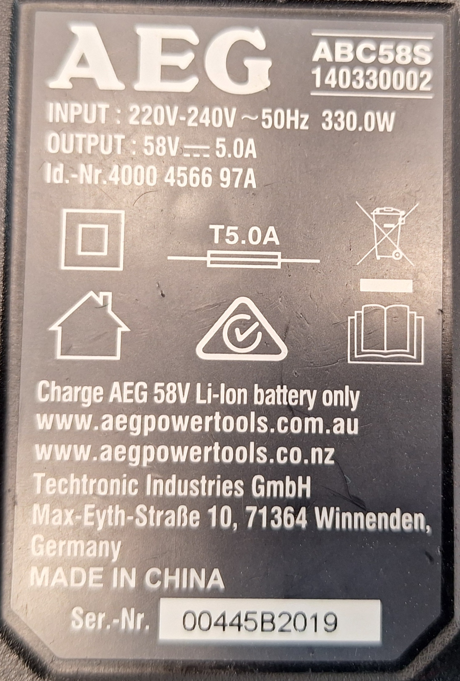 شارژر باطری ۵۸ ولت AEG abc58s